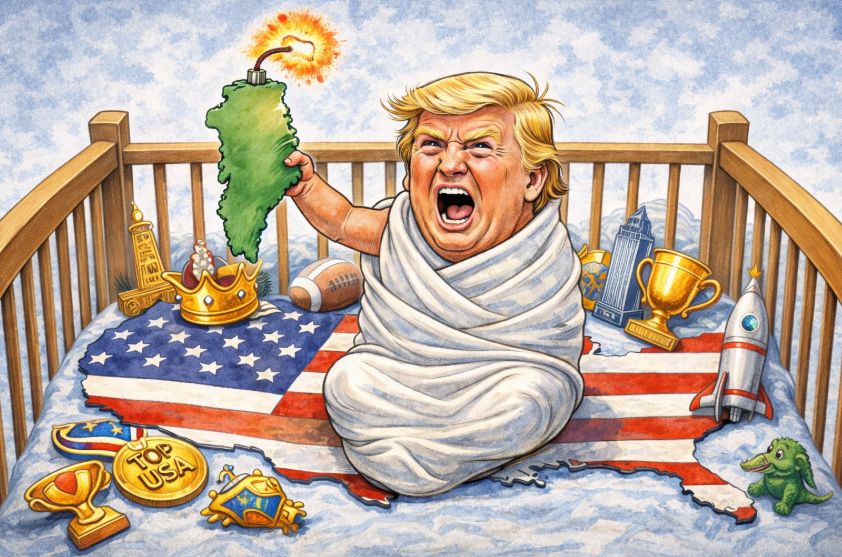 Ja vastustuksesta raivostunut Trump lisää kierroksia koneeseensa, saati kun hänen toinen megahankkeensa Gazan rauhanneuvostonsa miljardin jäsenmaksulla floppaa valtionpään toisensa jälkeen kieltäytyessä kutsusta. Emmanuel Macronille suivaantuneena Trump uhkaa Ranskaa 200% viinitullilla.